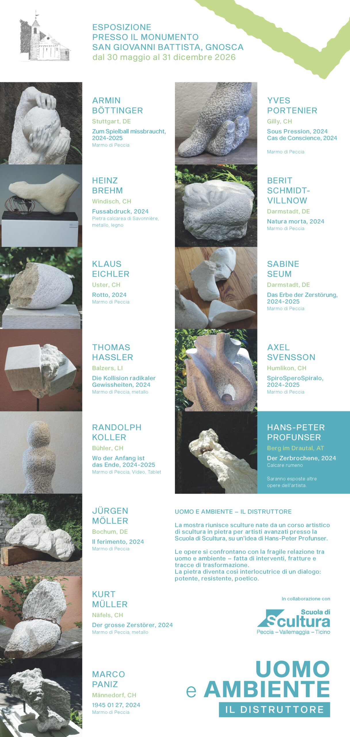 La mostra riunisce sculture nate da un corso artistico di scultura in pietra per artisti avanzati presso la Scuola di Scultura, su un’idea di Hans-Peter Profunser.